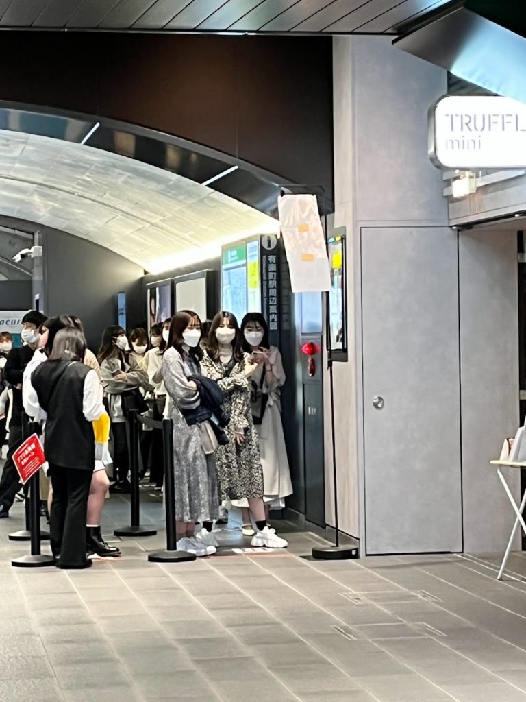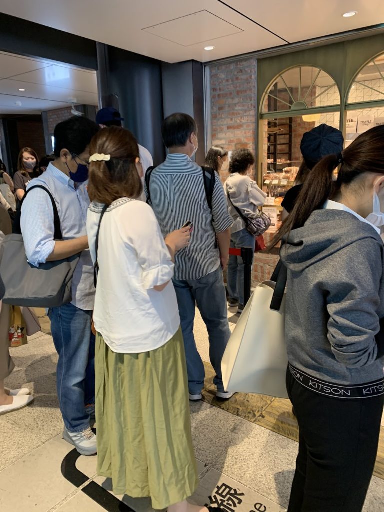 私は平日の13:40分に有楽町店に到着してこの写真を撮影しましたが、その時にはすでに20人ほどの人が並んでいて、実際に購入できたのは14:20分でしたので