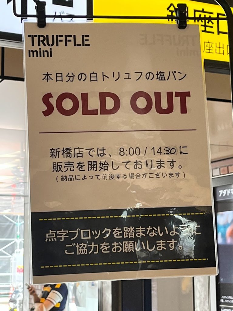 塩トリュフの塩パンを手に入れるためには、焼き上がり時間(配送時間)を把握しその時間に合わせてピンポイントで買いに行くことが大切です!