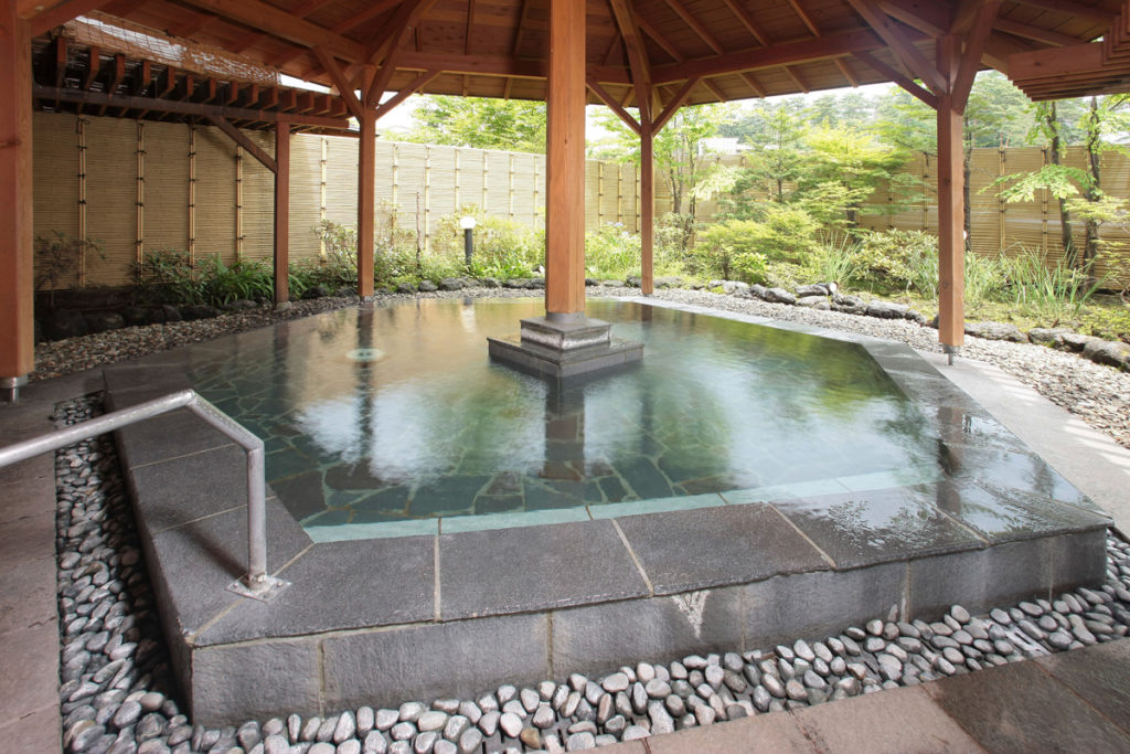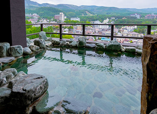 草津特有の硫黄香がなく、殺菌作用の強い『万代鉱源泉』を露天風呂に使用しています。