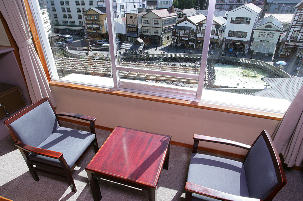予約時に、湯畑ビューのお部屋を指定することも可能です。