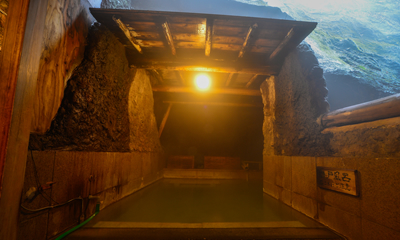 それぜれのお風呂とは別に、山肌をくりぬいて作られた野外岩風呂『岩戸の湯』は