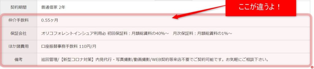仲介手数料についての記載は、物件情報に記されていますので、必ず見比べるようにしましょう。